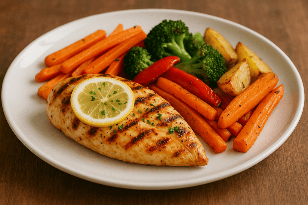 | Lemon Herb Chicken | 420 | Protein, Vitamin C | High-Protein |